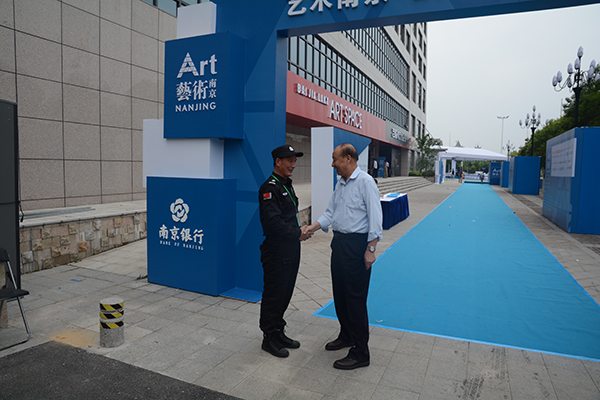 5月20日集團(tuán)公司董事長(zhǎng)、總裁荀金慶在副總裁孫勇和江蘇華威保安服務(wù)有限公司經(jīng)理王儒才的陪同下,看望藝術(shù)南京-2016國(guó)際藝術(shù)品博覽會(huì)執(zhí)勤的員工。