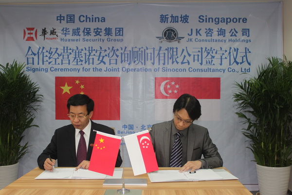 山東華威保安集團(tuán)與新加坡JK咨詢(xún)控股公司簽訂合作經(jīng)營(yíng)北京塞諾安咨詢(xún)顧問(wèn)公司協(xié)議