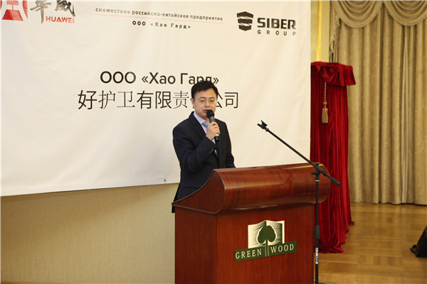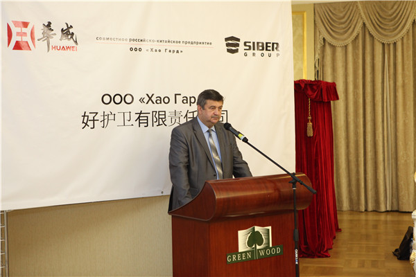在成立揭牌儀式上,山東華威保安集團(tuán)董事長(zhǎng)荀金慶、俄技集團(tuán)西貝爾公司總經(jīng)理符拉迪米爾.卡皮絲、好護(hù)衛(wèi)公司總經(jīng)理伊戈?duì)柗謩e致辭。警務(wù)參贊朱榮輝、世界警察協(xié)會(huì)副會(huì)長(zhǎng)阿里克謝.甘克因分別致賀辭,對(duì)好護(hù)衛(wèi)公司的成立表示祝賀。格林伍德園區(qū)、深圳九龍科技發(fā)展有限公司分別與好護(hù)衛(wèi)公司簽訂了合作意向書。