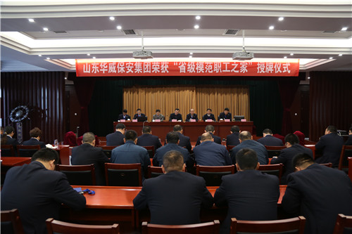 11月12日,由山東省總工會(huì)命名的“省級模范職工之家”暨“華威模范職工小家”授牌儀式在集團(tuán)隆重舉行。曲阜市總工會(huì)主席李建偉、副主席陳貴亮,集團(tuán)董事長、總裁荀金慶等領(lǐng)導(dǎo)及全體行管人員出席會(huì)議,會(huì)議由集團(tuán)常務(wù)副總裁楊中河主持。